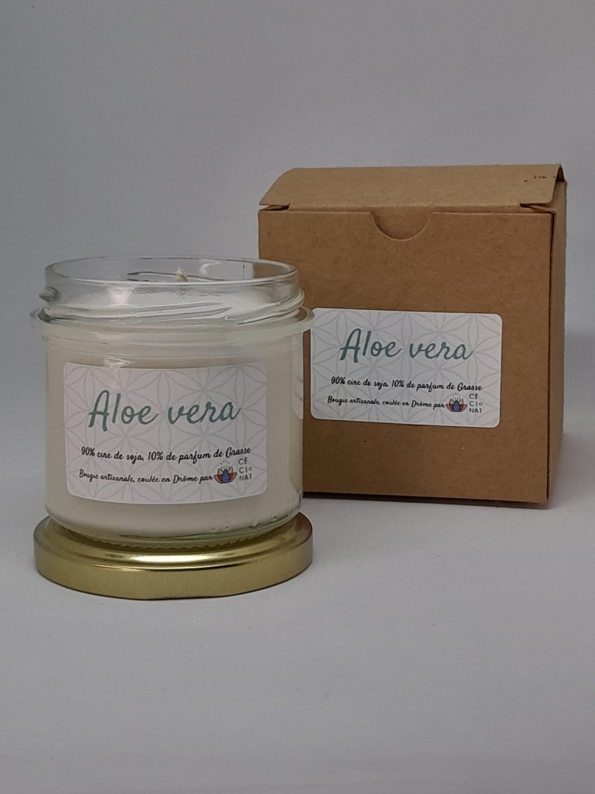 Bougie coulée main en Drôme, composée de 90% de cire de soja sans OGM, biodégradable et végan et de 10% de parfum sans CMR ni PHTALATE fait à Grasse.