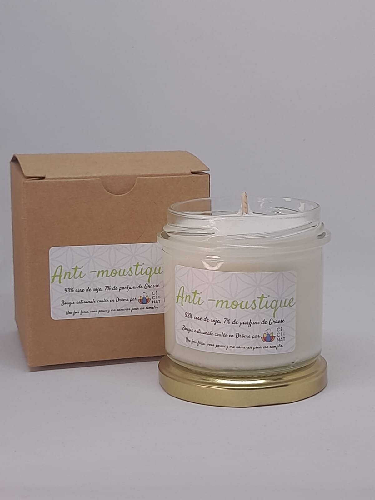 Bougie coulée main en Drôme, composée de 93% de cire de soja sans OGM, biodégradable et végan et de 7% de parfum sans PHTALATE et CMR maîtrisé, fait à Grasse.