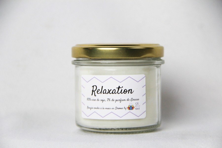 Bougie coulée main en Drôme, composée de 93% de cire de soja sans OGM, biodégradable et végan et de 7% de parfum sans CMR ni PHTALATE fait à Grasse.