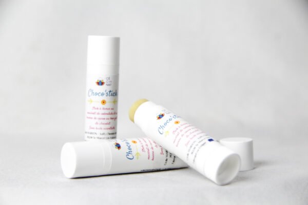Découvrez le Choco’stick, un stick à lèvres naturel spécialement formulé avec du macérât de calendula et du beurre de cacao pour nourrir et protéger vos lèvres.