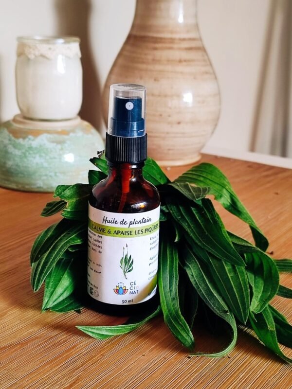 Découvrez notre Huile de Plantain, obtenue par la macération des feuilles de plantain lancéolé, cueillies avec soin sur nos parcelles cultivées en agriculture biologique à notre ferme. Cette huile précieuse est infusée dans de l’huile d’olive biologique, enrichie en vitamine E pour conserver toutes ses propriétés naturelles. L’huile de plantain est réputée pour ses propriétés apaisantes et est idéale pour soulager la peau irritée suite à des piqûres d’insectes ou de végétaux. Utilisée depuis des siècles pour ses bienfaits sur la peau, cette huile naturelle saura prendre soin de votre épiderme de manière douce et naturelle. Offrez-vous un soin de qualité avec notre Huile de Plantain, pour une peau apaisée et en pleine santé.